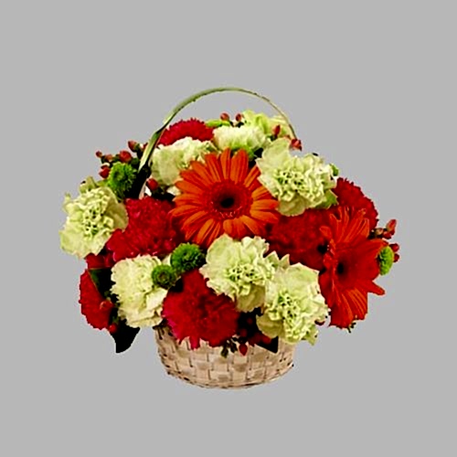 Karanfil ve gerberaların sepette özenle hazırlanmış hali, Serdivan Çiçek farkıyla sizlerle.