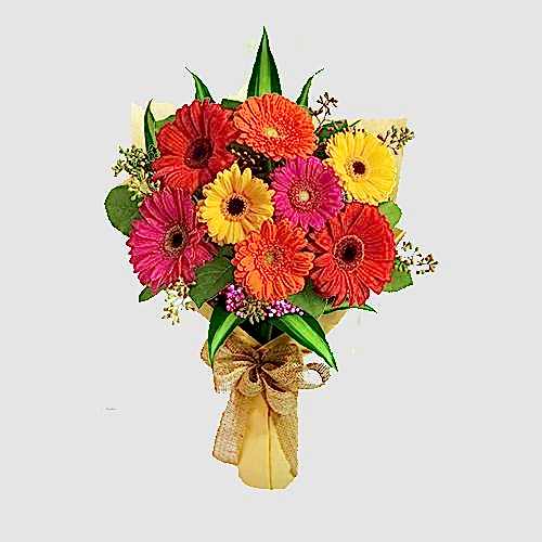 Ürünümüz 9 adet farklı renk Gerbera ve mevsim yeşillikleri ile hazırlanmaktadır.